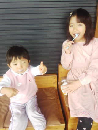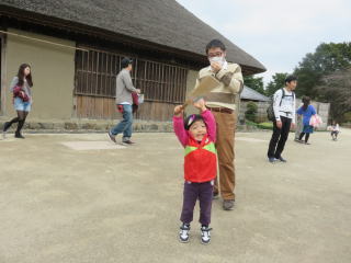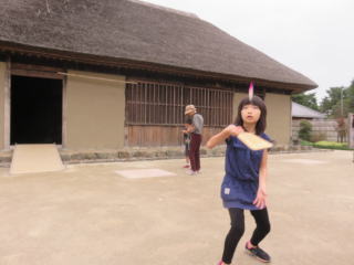 展望山を降りると”昔の遊びコーナー”があり、二人は羽子板に夢中。
