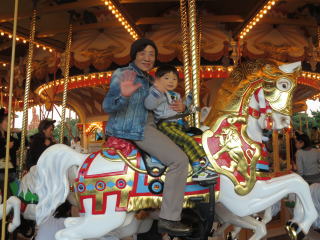 依亜はジェットコースターなど一人で乗っている間、緑之助はメリーゴーランドやらアスレチックやらでノンビリ遊んでいますお父さんとお母さんの目的はお花や景色