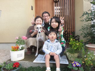 今年も庭にイルミネーションが点灯しました2014年11月23日 年賀状用の写真撮影をしました。今年はサンくんも一緒に撮影に参加したのですが、子供たちとサン君が同時に良い顔する奇跡の一瞬を撮るのに苦労しました。