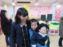 依亜ちゃんはお友達と遊び、お母様はバザーの販売員としてお仕事中。仕方なく暇なお父さんと遊んでいます。