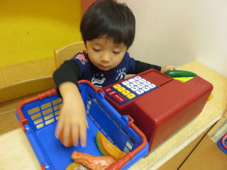 まずはブロックで脳みそを鍛えます脳みそが柔らかくなったところで、レジスターで計算をし、更に脳みそを鍛え上げます。 次は手先を動かすため