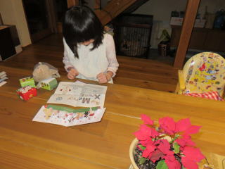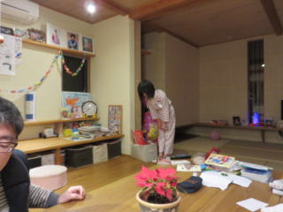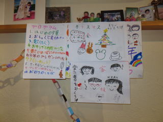 ↑これも我が家で恒例となっている飾り。イベント(誕生日など)があるときには貼り出されます。最近はプログラムも貼り出されるこだわりよう。それではクリスマス会を始めます。