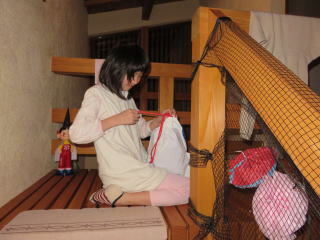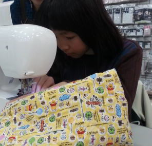 ベビーカー持ってこなかったから抱っこしていかなきゃ。。。2014年12月28日 手芸ショップの教室で、ミシンを使ってバッグを作りました