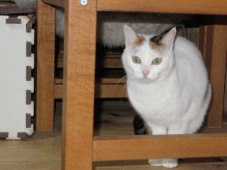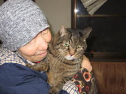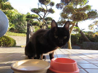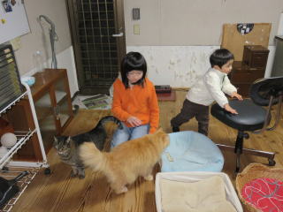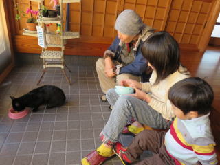 野良猫ちゃんが遊びに来ました。お腹がとても空いているようで、たくさんご飯を食べてくれました。こちらはパパ実家の飼い猫ちゃんたち専用のお部屋です。いざ突撃~! ↓プーちゃん 重いよ・・・
