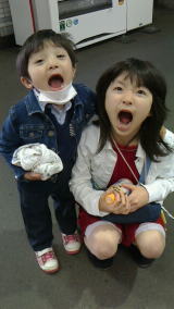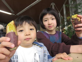 まだ外は寒いので、お迎えバスが来るまで、暖かなお洋服を着て待っています2015年4月11日 近場の「道の駅」で焼き芋を食べ、、