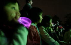 二人のお気に入り、エレクトリカルパレード。キラキラ光るディズニーキャラクター。