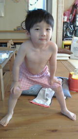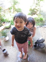 あっつーい 玄関前で水遊びで全身水浸しじゃないですか!まだ5月なのに風邪ひきますよ2015年5月4日 パパババ御一行様が2年ぶりに来訪していただきました。前回同様にパパ兄とパパ甥(コー君)も一緒です。