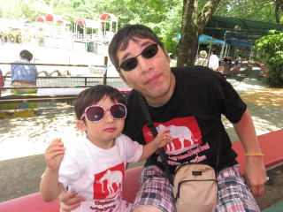 パパ兄は子供たちの相手で公園にまで引きずり出されて大汗をかいていました。