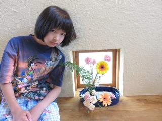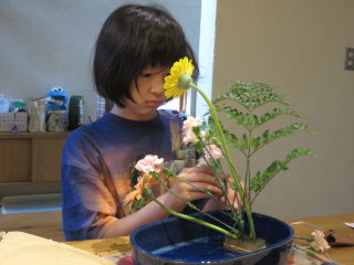 依亜は華道クラブを選び、さっそく腕前を家で披露してくれました。2015年5月23日 小学校は運動会なのです