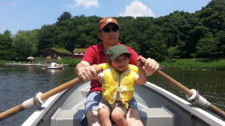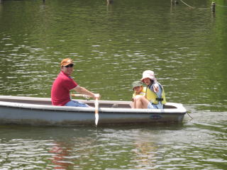 貸しボートで池に出てみました依亜も一生懸命漕ぎますが、難しいね