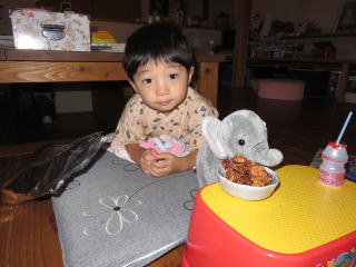 象のハナちゃんと唐揚げを食べます