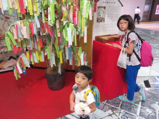 チッチッ ヌイグルミはご飯を食べられないぜ、僕だったら食べられるぜ、僕に食べさせる気はないのかい?!2015年7月4日 東京駅のコンコースに七夕飾りがありました