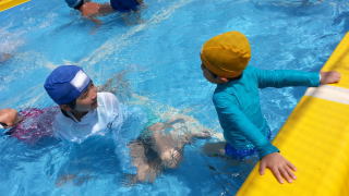 緑之助に泳ぎ方を教える依亜