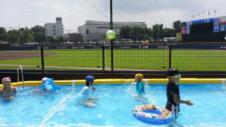 プロ野球を見ながら水遊び♪