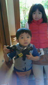 よーし鉄砲でやっつけちゃうぜ(お母ちゃまの職場の方が譲ってくれた玩具)