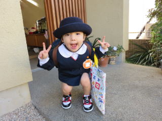 本日も緑之助の登園写真です。年中さんももう少しで終わりますね。