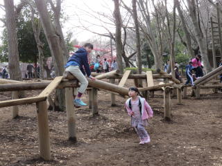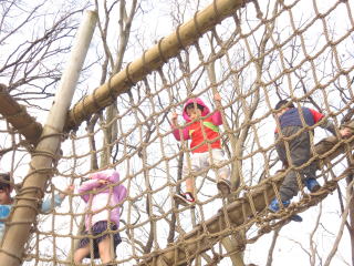 公園の後半戦は屋外に飛び出し、アスレチックで遊びまくりです。