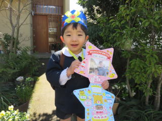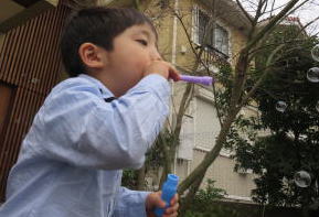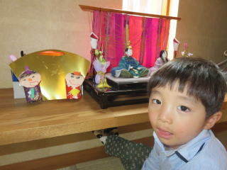 3月 お雛様もシャボン玉で遊びたいみたいだね お外に連れて行こうか?