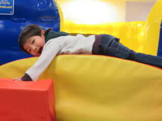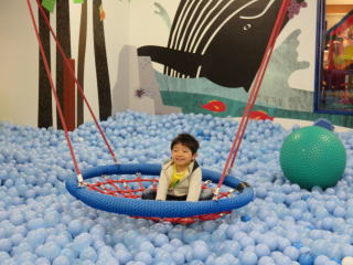 遊び場に連れてきてもらいました ボールプールのブランコは船に似っている気分