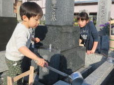 3月生まれの緑之助も演台に上がって、皆にお祝いしてもらっています