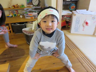 幼稚園に行く前に 体にパワーをため込んで ・・・トイレ行ってきまーす