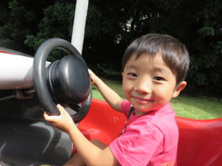 カートもあって 一人乗りができる依亜は自由気ままに走らせています ゴーゴー!