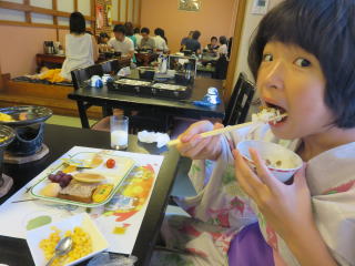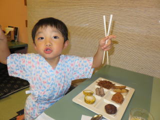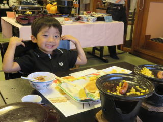 広いお風呂(水着着用の混浴コーナーもある)には夕方前には入浴してしまったので、食後、部屋に戻ってからはウノやトランプをして楽しみました。