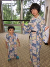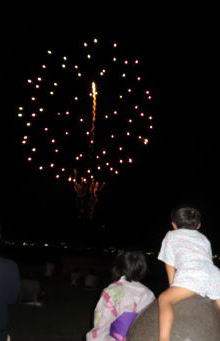 依亜は浴衣をお借りして、湖畔の花火大会に