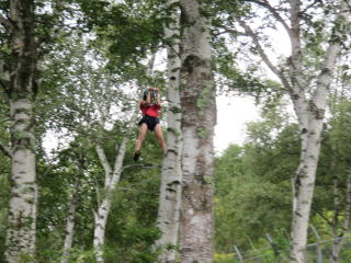 ワイヤーケーブルで 森の中 地上8mを滑空 きもちいー