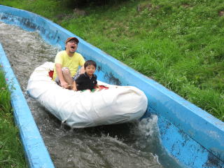 二人乗りゴムボートで急流を探検 結構 濡れちゃって きもちいー