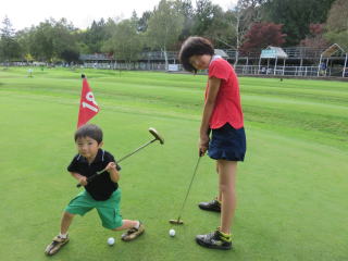 オヤジが無理やり誘ったパターゴルフ でも 2人とも 楽しくカップイン