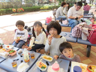 おかあちゃま達が作ってくれた お弁当でピクニックです おいしいね