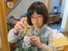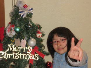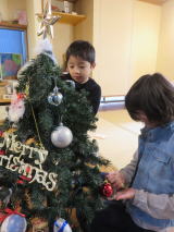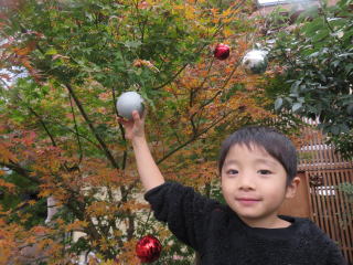 クリスマスの飾りをしましょう 外の木にはボールを ぶら下げたら 雰囲気でてきたよ