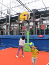 バスケットボール ゴールに入るかな? 緑之助は投げても投げても ボールがゴールに届きません