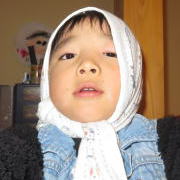 眼帯ではなく 手ぬぐいで 頬被りして 眼帯代わり?