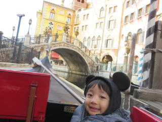 水の都ヴェネチアをゴンドラに乗って優雅な朝のひと時、、、そのころお父さんはファストパスを取得するために、依亜はアトラクションに奔走