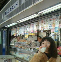 駅のミルクスタンドで景気づけの一杯だ