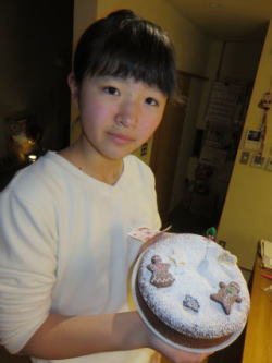 食事 → 発表 → 手作りチョコケーキ