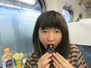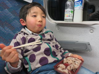 新幹線では ご満悦のランチタイム