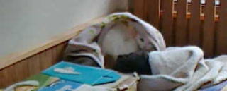 猫ちゃんは 丸まって 動けないようです