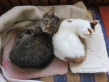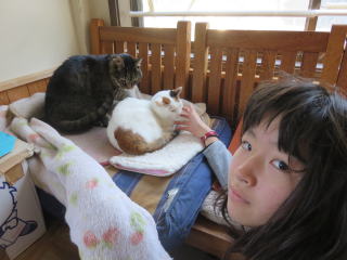 二人とも いらっしゃーい 私たち(猫)2匹は寒くて毛布から出られませーん