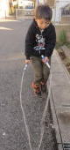 スイスイ滑る依亜ちゃんにあこがれて、ローラーブレードに緑之助も挑戦!