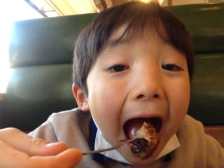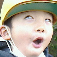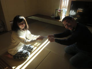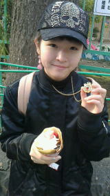 依亜は大喜び、緑之助は鼻をつまんでいます