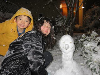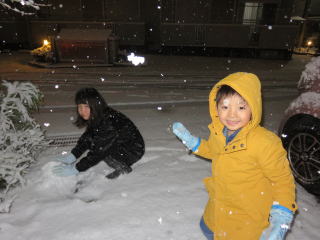 夕方には雪遊びができるくらいに積もり、雪だるま(オラフ)も作りました