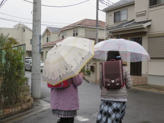 終了式 あいにくの雨 1年生 最後の登校です いってきまーす