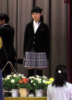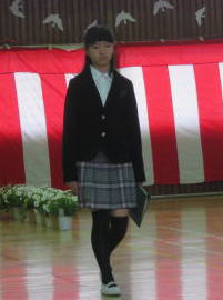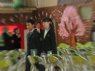 卒業証書を右手に席に戻ってきました 終始緊張した表情です