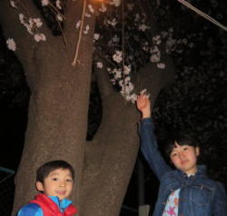夜は近所の公園で桜のライトアップがされているため、お散歩に行ってきました