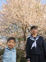 入学式には散ってしまうので 満開の桜の下で ハイチーズ