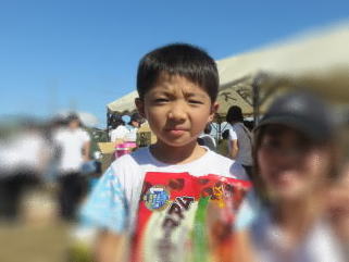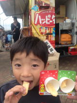 近所のお祭りに「ハッピーターン号」が来て試食の食べ比べをしていたよ。