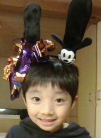 上奥 緑の台紙に貼られているものはストローのビニル袋で作ったウサギ